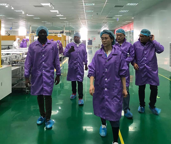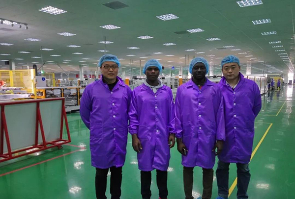 4月25日,我們就迎來了兩位加納的客人,我們這兩位加納客人中文也是非常的溜,還能彪兩句方言呢!在愉悅的氣氛當中,我們業(yè)務部李經理,陪同我們遠道而來的加納的客人,首先參觀了廠區(qū)的展廳,了解了公司的成立、發(fā)展以及未來的發(fā)展方向,觀摩了產品展示區(qū)的組件產品以及微電站。緊接著,又來到了車間,李經理系統詳細的給加納客人介紹了我們的復合型生產線的特點及優(yōu)勢,加納客人也饒有興致地詢問了很多問題。