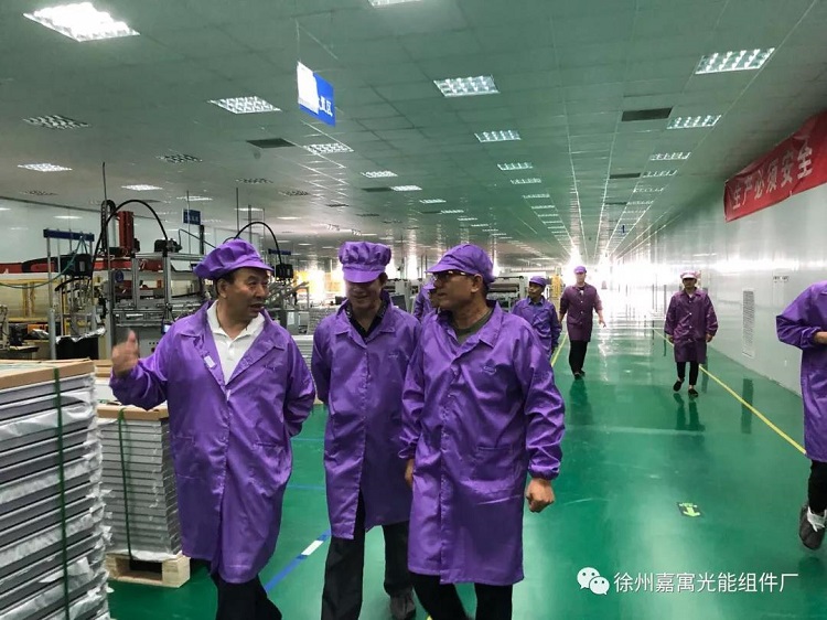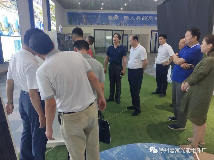在徐州光伏業務板塊,董事長詳細了解徐州嘉寓光能生產運營、銷售訂單、創新模式等情況,并且對未來的戰略發展規劃提出了明確指示:要以市場及業務為導向,順應市場的需求,增強技術創新與差異化競爭能力,走在創新技術、創新產品的前沿,勇當企業發展的前鋒;要加強聯系,通力協作的工作機制,進一步增強使命感、責任感,把握先機,積極拓展國內外市場。董事長一行還參觀了嘉寓光能展廳以及生產車間,并了解特色產品雙玻組件及輕質組件產線的各生產環節。