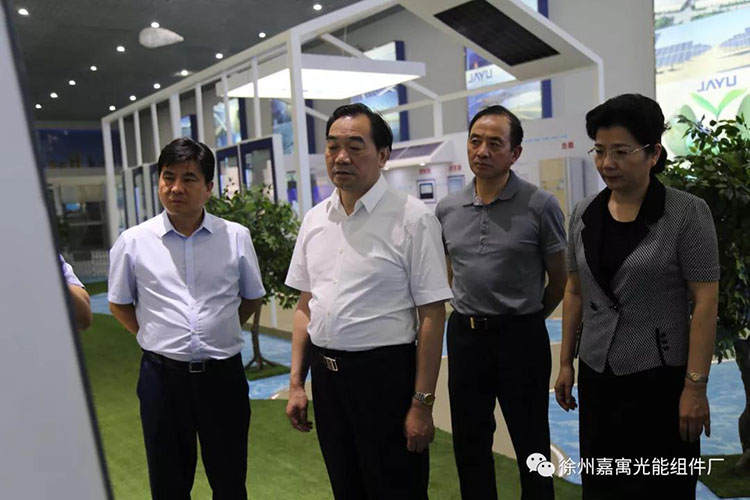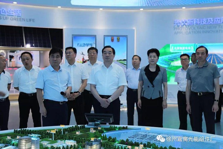 嘉寓光能作為沛縣光伏產(chǎn)業(yè)鏈中的重要一環(huán),政府部門一直給予高度的重視與支持。在展廳內(nèi)嘉寓光能總經(jīng)理陳志榮向周鐵根書記一行,介紹了嘉寓光能的基本情況,重點介紹了嘉寓光能的特色產(chǎn)品雙玻組件以及輕質(zhì)組件。