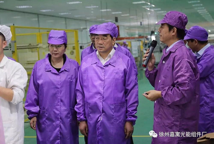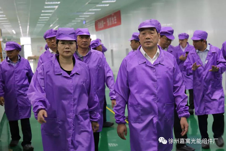 在公司領(lǐng)導(dǎo)的帶領(lǐng)下,市委書記周鐵根一行穿上防塵服走進生產(chǎn)車間,周鐵根詳細詢問企業(yè)的生產(chǎn)經(jīng)營情況和銷售情況,希望企業(yè)加快綠色發(fā)展、轉(zhuǎn)型發(fā)展步伐,進一步樹立更高標桿,錨定目標,真抓實干,依托資源稟賦發(fā)展新興主導(dǎo)產(chǎn)業(yè),持之以恒,做大做強,為沛縣光伏產(chǎn)業(yè)的發(fā)展貢獻更大力量。