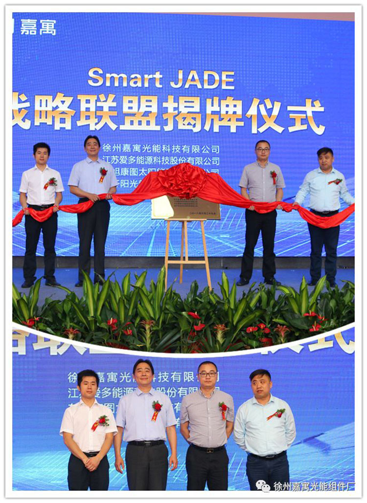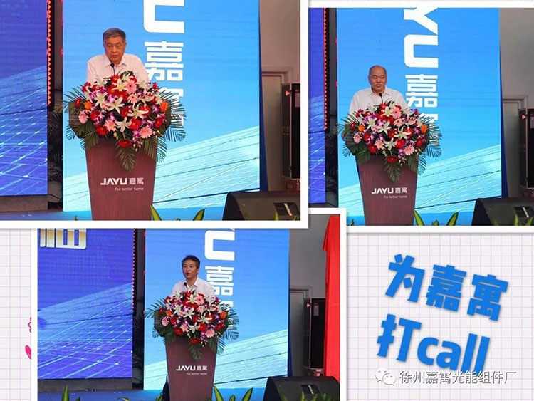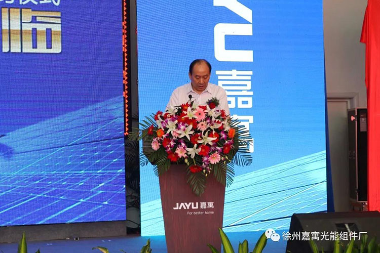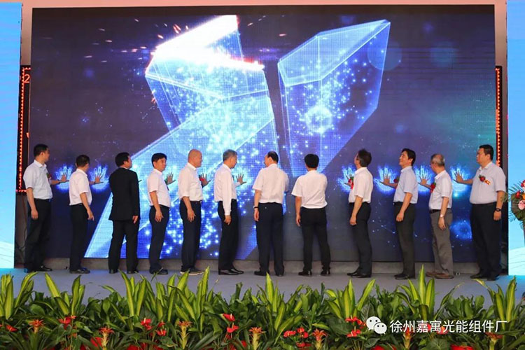 6月29日,徐州嘉寓光能開幕投產暨戰略簽約儀式隆重舉行。中國光伏行業協會秘書長王勃華、沛縣常務副縣長吳以貴、國家發改委能源研究所王斯成教授、國家光電建筑應用委員會主任梁岳峰、沛縣縣委常委/開發區黨工委書記于帆、嘉寓集團董事長田家玉、嘉寓股份副董事長/執行總裁陳其澤、嘉寓股份董事張初虎等領導及嘉賓出席投產儀式。