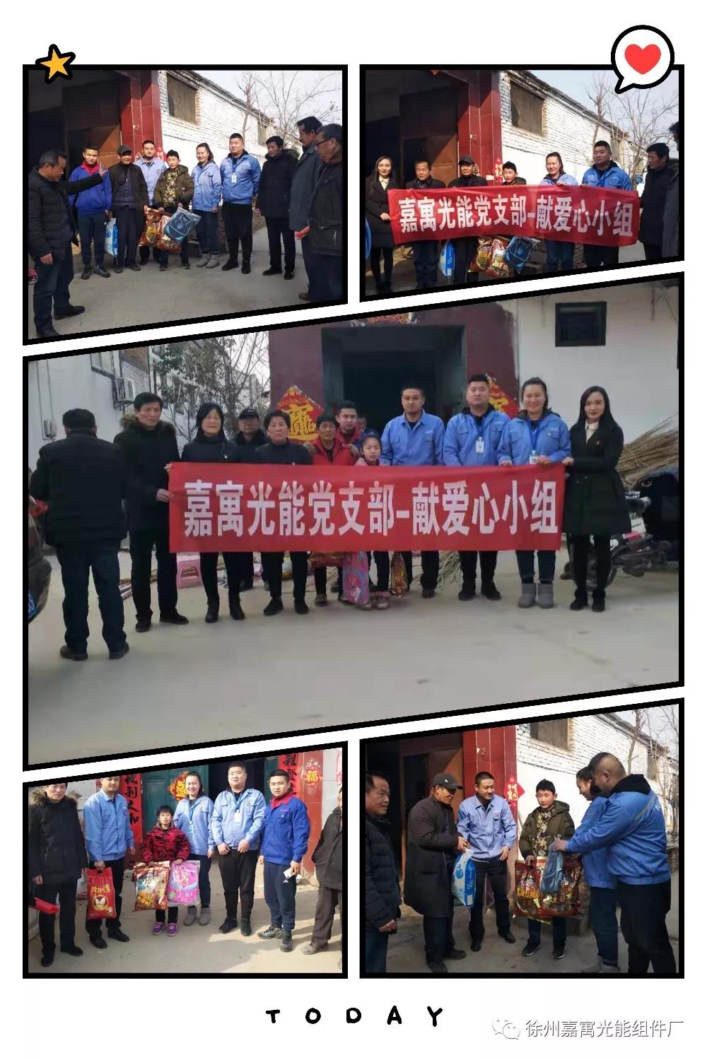 近日,沛縣經濟開發區黨委,組織各企業獻愛心活動。徐州嘉寓光能黨支部積極響應,組成愛心慰問小組,深入群眾,慰問孤殘貧困兒童,為他們送去生活慰問品,并且為學齡兒童送去了書包、文具、讀物等愛心物資,鼓勵他們好好學習,爭做對社會有用之人。