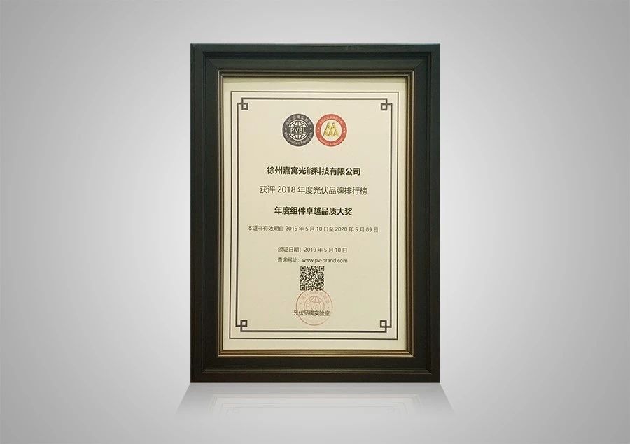 5月10日,由光伏品牌實驗室(PVBL)攜手世紀新能源網聯合主辦的“CPC2019世紀光伏大會”暨“PVBL2018年度中國光伏品牌排行榜頒獎盛典”在上海盛大舉行。徐州嘉寓光能科技有限公司(以下簡稱‘嘉寓光能’)憑借過硬的產品質量、良好的用戶口碑、*質的系統服務,一舉榮獲“2018年度光伏品牌排行榜“之”年度組件卓越品質大獎”。