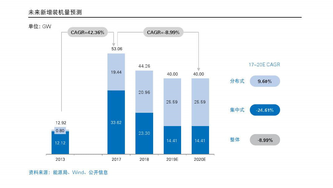 《2019 中國光伏電站資產交易白皮書》未來新增裝機量預測