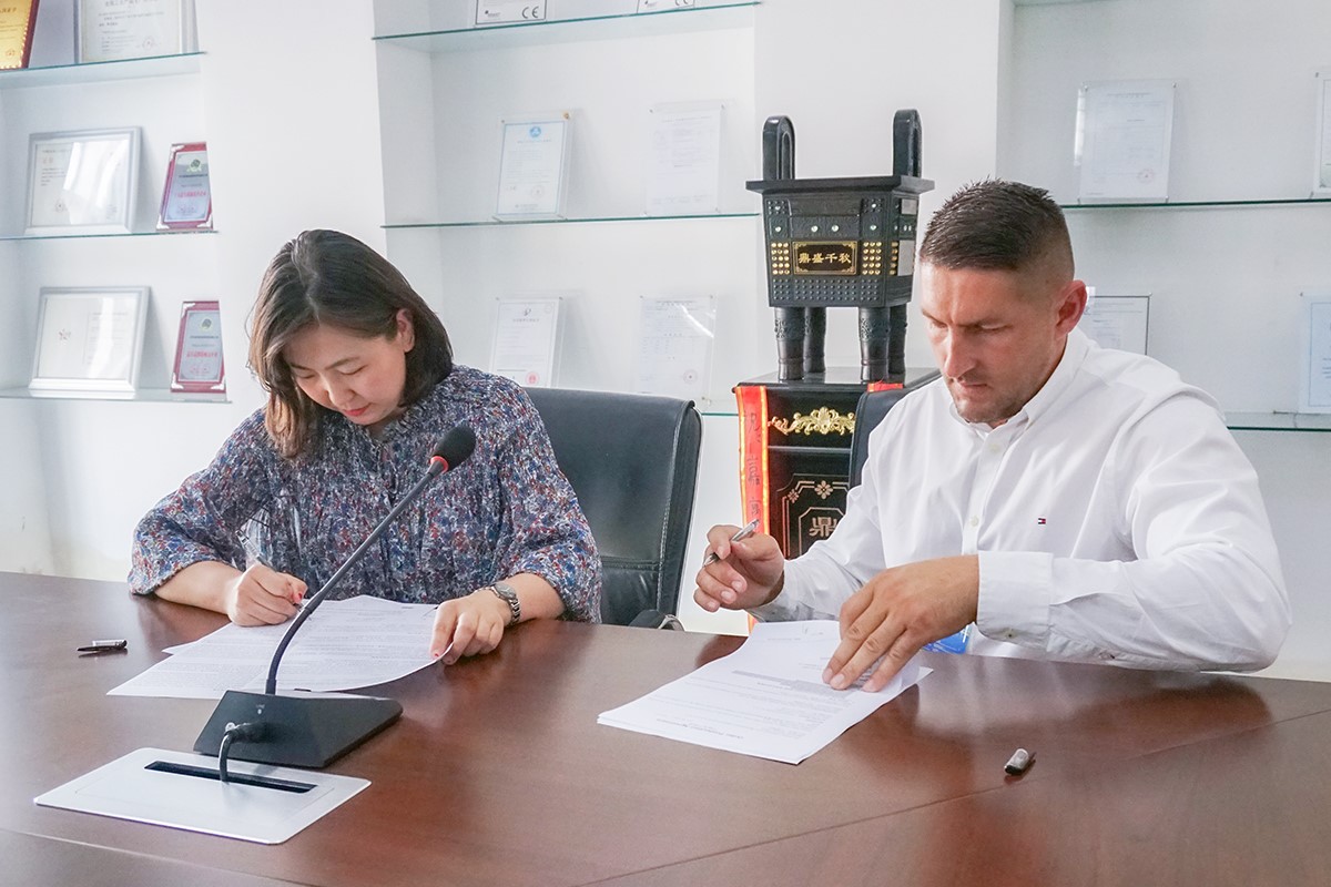 嘉寓光能業務副總冉峰與波蘭客戶簽約現場